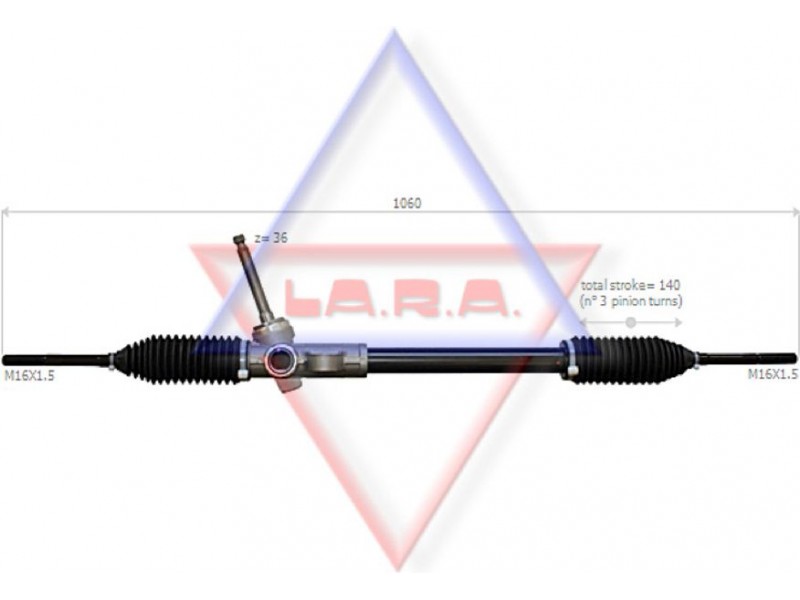 Criteries : Αριθμός δοντιών, στέλεχος εισόδου 36, Αριστερή ή δεξιά κυκλοφορία για δεξιά κυκλοφορία, Αριστερό ή δεξιό τιμόνι για αριστεροτίμονα οχήματα, Διάμετρος, στέλεχος εισόδου [mm] 16,6, Διαστάσεις σπειρώματος αξονικής άρθρωσης M16x1,5, Είδος κιβωτίου συστήματος οδήγησης Οδοντωτή ράβδος - πυξίδα διεύθυνσης, Μήκος 1/ μήκος 2 [mm] stroke= 140, Ολικό μήκος [mm] 1060, Πλήθος των στροφών τιμονιού 3, Τρόπος λειτουργίας μηχανικό, Τρόπος λειτουργίας χειροκίνητο, Τύπος σπειρώματος αξονικής άρθρωσης με εξωτερικό σπείρωμα, Τύπος σύνδεσης, στέλεχος εισόδου οδοντωτό, Ύψος, στέλεχος εισόδου [mm] 123