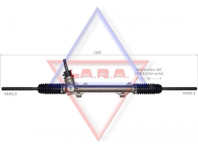 Criteries : Απόσταση των οπών στερέωσης [mm] 260, Αριστερή ή δεξιά κυκλοφορία για δεξιά κυκλοφορία, Αριστερό ή δεξιό τιμόνι για αριστεροτίμονα οχήματα, Διάμετρος, στέλεχος εισόδου [mm] 18,5, Διαστάσεις σπειρώματος αξονικής άρθρωσης M14x1,5, Είδος κιβωτίου συστήματος οδήγησης Οδοντωτή ράβδος - πυξίδα διεύθυνσης, Μήκος 1/ μήκος 2 [mm] stroke= 160, Ολικό μήκος [mm] 1165, Πλήθος των στροφών τιμονιού 4,5, Τρόπος λειτουργίας μηχανικό, Τρόπος λειτουργίας χειροκίνητο, Τύπος σπειρώματος αξονικής άρθρωσης με εσωτερικό σπείρωμα, Τύπος σύνδεσης, στέλεχος εισόδου τετράγωνο, Ύψος, στέλεχος εισόδου [mm] 73