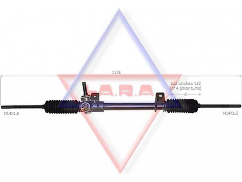 Criteries : Απόσταση των οπών στερέωσης [mm] 276, Αριστερή ή δεξιά κυκλοφορία για δεξιά κυκλοφορία, Αριστερό ή δεξιό τιμόνι για αριστεροτίμονα οχήματα, Διάμετρος, στέλεχος εισόδου [mm] 18,5, Διαστάσεις σπειρώματος αξονικής άρθρωσης M14x1,5, Είδος κιβωτίου συστήματος οδήγησης Οδοντωτή ράβδος - πυξίδα διεύθυνσης, Μήκος 1/ μήκος 2 [mm] stroke= 130, Ολικό μήκος [mm] 1175, Πλήθος των στροφών τιμονιού 4, Τρόπος λειτουργίας μηχανικό, Τρόπος λειτουργίας χειροκίνητο, Τύπος σπειρώματος αξονικής άρθρωσης με εξωτερικό σπείρωμα, Τύπος σύνδεσης, στέλεχος εισόδου τετράγωνο, Ύψος, στέλεχος εισόδου [mm] 50,5