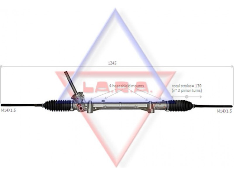 Criteries : Απόσταση των οπών στερέωσης [mm] 317, Αριστερή ή δεξιά κυκλοφορία για δεξιά κυκλοφορία, Αριστερό ή δεξιό τιμόνι για αριστεροτίμονα οχήματα, Διάμετρος, στέλεχος εισόδου [mm] 16,5, Διαστάσεις σπειρώματος αξονικής άρθρωσης M14x1,5, Είδος κιβωτίου συστήματος οδήγησης Οδοντωτή ράβδος - πυξίδα διεύθυνσης, Μήκος 1/ μήκος 2 [mm] stroke= 130, Ολικό μήκος [mm] 1245, Πλήθος οπών με βόλτα 4, Πλήθος των στροφών τιμονιού 3, Τρόπος λειτουργίας ηλεκτρικό, Τρόπος λειτουργίας χειροκίνητο, Τύπος σπειρώματος αξονικής άρθρωσης με εξωτερικό σπείρωμα, Τύπος σύνδεσης, στέλεχος εισόδου τετράγωνο, Ύψος, στέλεχος εισόδου [mm] 132