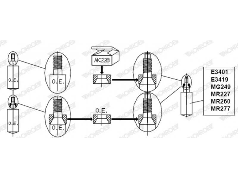 Monroe Σετ βιδών, Σώμα Του Ρουλεμάν τροχού, Γόνατο Ανάρτησης - AK228