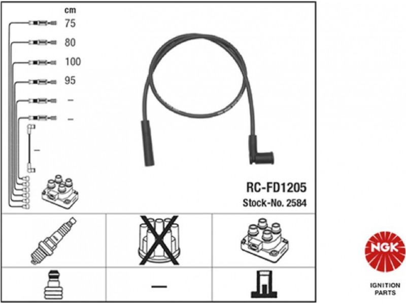 RCFD1205(2584)-ΣΕΤ ΜΠΟΥΖΟΚΑΛΩΔΙΑ FORD/MAZDA FIESTA IV(JA,JB)/KA(RB)/121 III 1.3 95-08 NGK 2584 - Σετ καλωδίων υψηλής τάσης