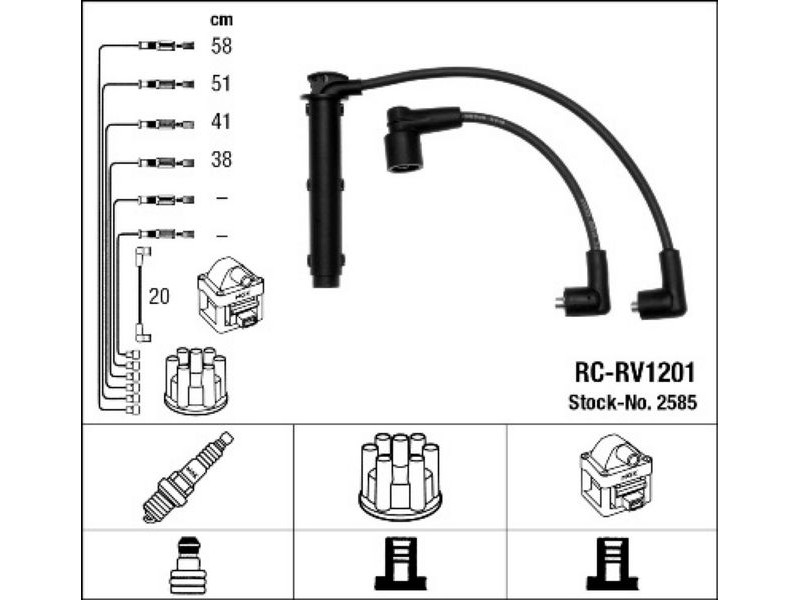 RCRV1201(2585)-ΣΕΤ ΜΠΟΥΖΟΚΑΛΩΔΙΑ FREELANDER(LN) 1.8 98-00 NGK 2585 - Σετ καλωδίων υψηλής τάσης