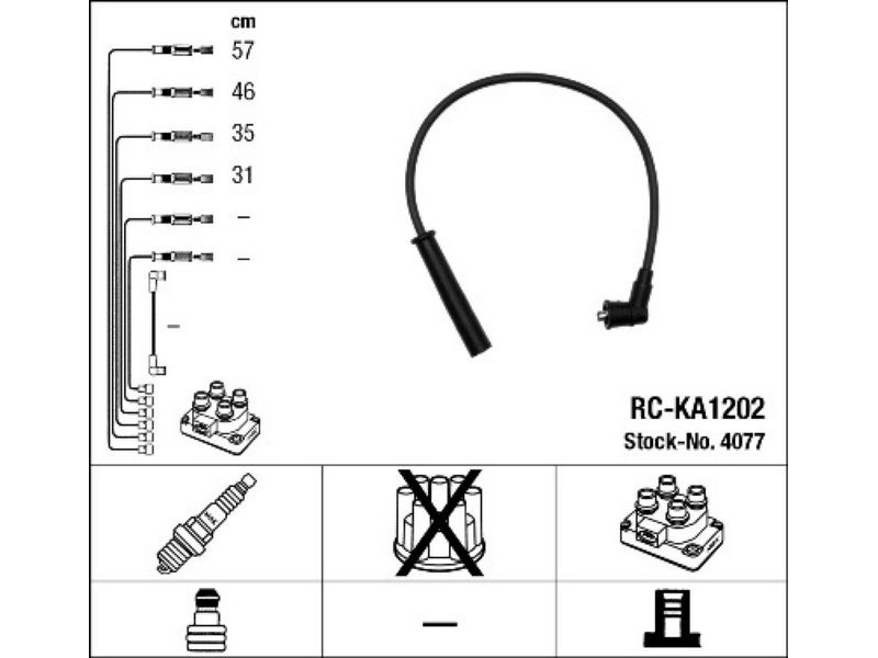 RC-KA1202(4077)-ΜΠΟΥΖΟΚΑΛΩΔΙΑ KIA RIO(DC) 1.3 00-05 NGK 4077 - Σετ καλωδίων υψηλής τάσης