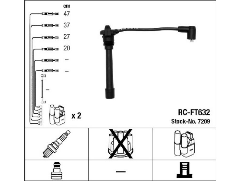 RCFT632 (7209) ΣΕΤ ΜΠΟΥΖΟΚΑΛΩΔΙΑ PUNTO(176) 1,2 16V NGK 7209 - Σετ καλωδίων υψηλής τάσης