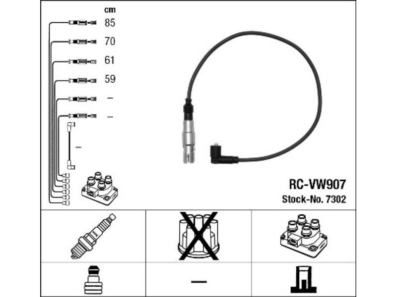 RCVW907(7302)-ΣΕΤ ΜΠΟΥΖΟΚΑΛΩΔΙΑ SEAT/VW AROSA(6H)/POLO(6N2) 1.0-1.4 97-04 NGK 7302 - Σετ καλωδίων υψηλής τάσης