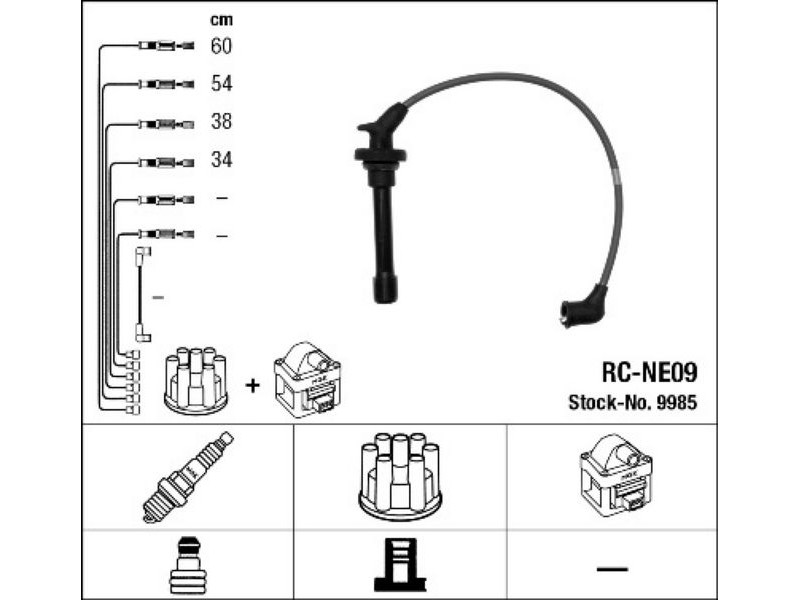 RCNE09 (9985) ΣΕΤ ΜΠΟΥΖΟΚΑΛΩΔΙΑ NISS.MICRA 1.3 92- NGK 9985 - Σετ καλωδίων υψηλής τάσης