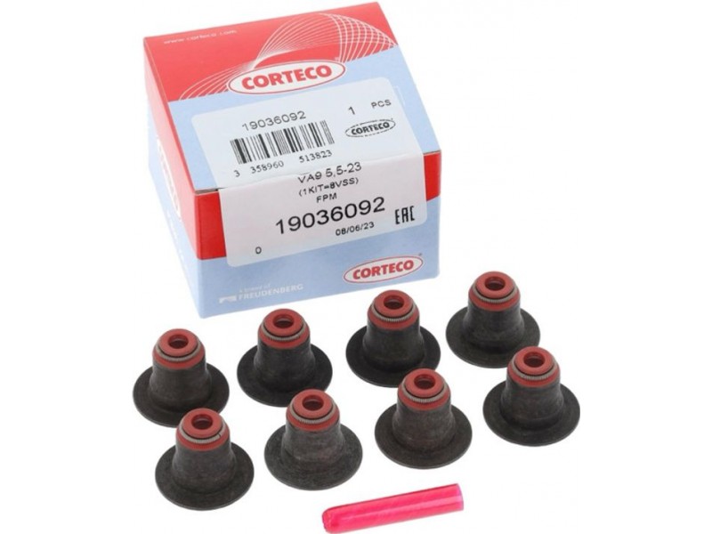 19036092 CORTECO KIT VA09 5,5-23 FKM (1 KIT= 8 VSS) ΣΕΤ ΤΣΙΜΟΥΧΕΣ ΒΑΛΒΙΔΩΝ - CITROEN, PEUGEOT, FORD CORTECO 19036092 - Σετ στεγανοπ., στέλεχος βαλβίδας