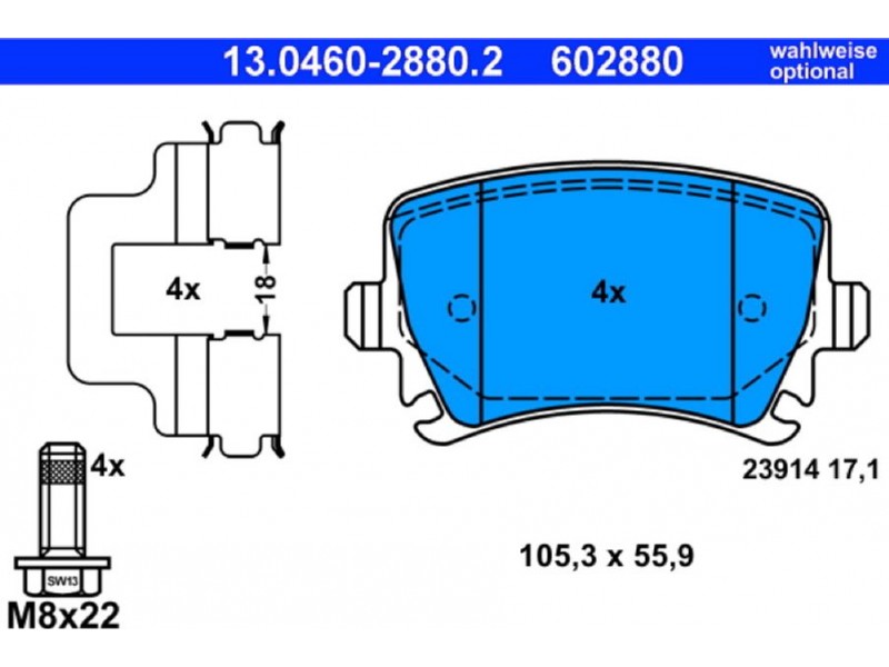602880 - ΤΑΚΑΚΙΑ ΟΠΙΣΘ.GOLF IV/V/VI,POLO,FABIA,OCTAVIA,IBIZA,LEON,A3 ATE 13.0460-2880.2 - Σετ τακάκια, δισκόφρενα
