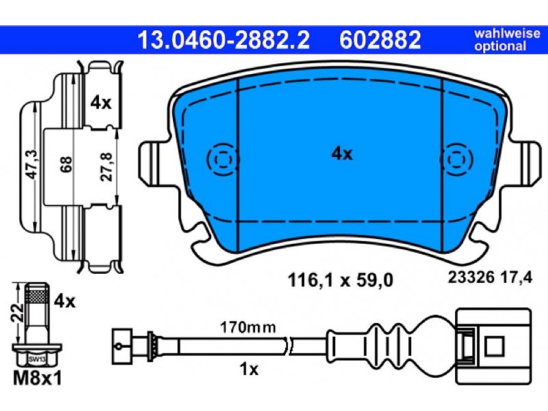 Criteries : MAPP-Code διαθέσιμος , Επαφή προειδοποίησης φθοράς συμπεριλ. επαφής για ένδειξη φθοράς, Κωδικός του συνιστώμενου εξαρτήματος 13.0460-0023.2, Μήκος επαφής προειδοποίησης [mm] 170, Πάχος [mm] 17,4, Πλάτος [mm] 116,1, Πλήθος βιδών 4, προσοχή στις διαστάσεις , Στοιχεία ελέγχου E1 90R-02A0498/0489, Στοιχεία ελέγχου E9 90R-02A1163/0715, Συμπληρωματικό προϊόν / συμπληρωματική πληροφορία με αξεσουάρ, Συμπληρωματικό προϊόν/ πληροφορίες 2 με βίδες δαγκάνας φρένων, Σύστημα φρένων Lucas / TRW, Υψος [mm] 59,0