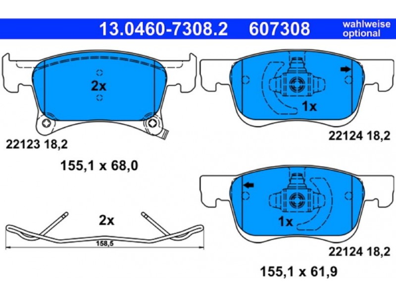 Criteries : MAPP-Code διαθέσιμος , Επαφή προειδοποίησης φθοράς με ηχητική προειδοποίηση φθοράς, Πάχος [mm] 18,2, Πλάτος 1 [mm] 155,1, Πλάτος 2 [mm] 155,1, Στοιχεία ελέγχου E1 90R-02A0325/0184, Συμπληρωματικό προϊόν / συμπληρωματική πληροφορία με αξεσουάρ, Σύστημα φρένων ATE, Ύψος 1 [mm] 61,9, Ύψος 2 [mm] 68,0
