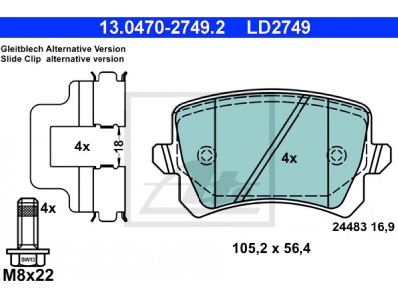 LD2749 - ΤΑΚΑΚΙΑ CERAMIC - AUDI A6 (4F2/C6) Limousine (04-11) ATE 13.0470-2749.2 - Σετ τακάκια, δισκόφρενα