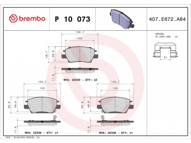 P 10 073 ΤΑΚΑΚ. ΕΜΠΡ. CHEVROLET VOLT 11- / OPEL AMPERA-E 17-19 BREMBO P 10 073 - Σετ τακάκια, δισκόφρενα