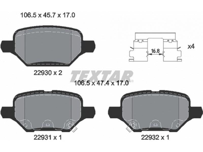 TEXTAR ΔΙΣΚΟΦΡΕΝΑ OPEL TEXTAR 2293001 - Σετ τακάκια, δισκόφρενα