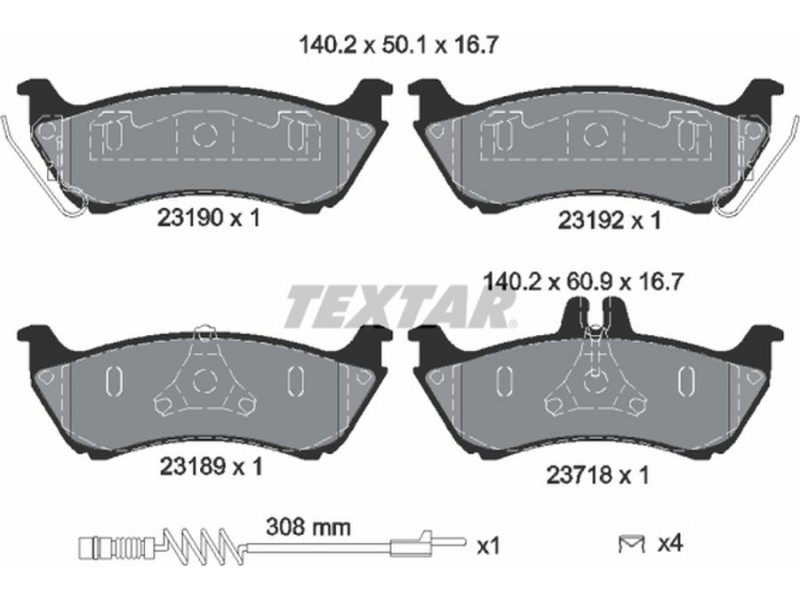 TEXTAR (698 11) ΔΙΣΚΟΦΡΕΝΑ MERCEDES TEXTAR 2319002 - Σετ τακάκια, δισκόφρενα