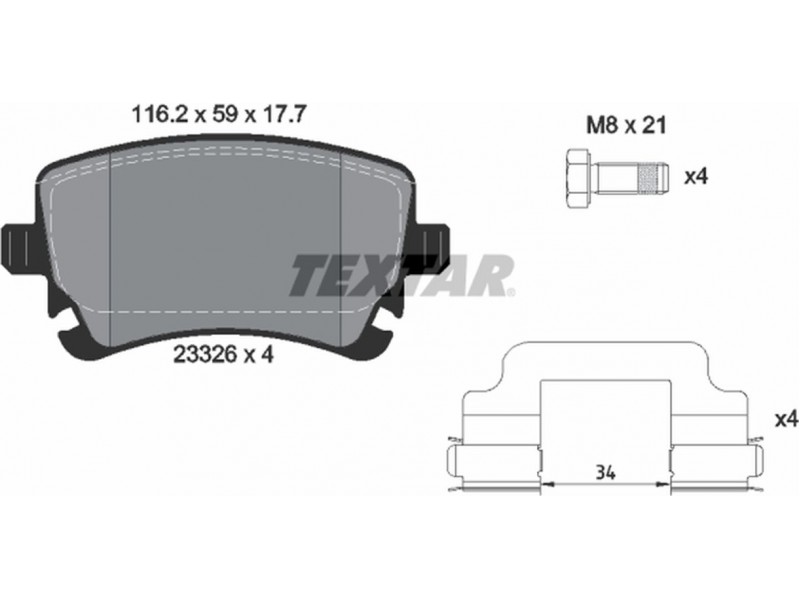 TEXTAR ΔΙΣΚΟΦΡΕΝΑ AUDI TEXTAR 2332607 - Σετ τακάκια, δισκόφρενα