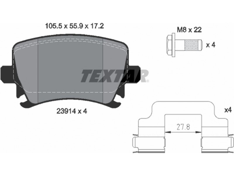 TEXTAR (1031 00) ΔΙΣΚΟΦΡΕΝΑ V.W TEXTAR 2391402 - Σετ τακάκια, δισκόφρενα