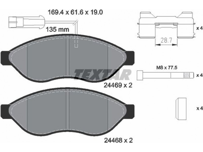 TEXTAR 2446801 ΔΙΣΚΟΦΡΕΝΑ FIAT TEXTAR 2446901 - Σετ τακάκια, δισκόφρενα