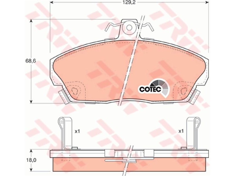 Criteries : Επαφή προειδοποίησης φθοράς με ηχητική προειδοποίηση φθοράς, Πάχος [mm] 18, Περιορισμός κατασκευαστή TRW, Πλάτος [mm] 129,2, Στοιχεία ελέγχου E1 90R 01024/256, Συμπληρωματικό προϊόν / συμπληρωματική πληροφορία με αξεσουάρ, Συμπληρωματικό προϊόν/ πληροφορίες 2 με βίδες δαγκάνας φρένων, Υψος [mm] 68,6