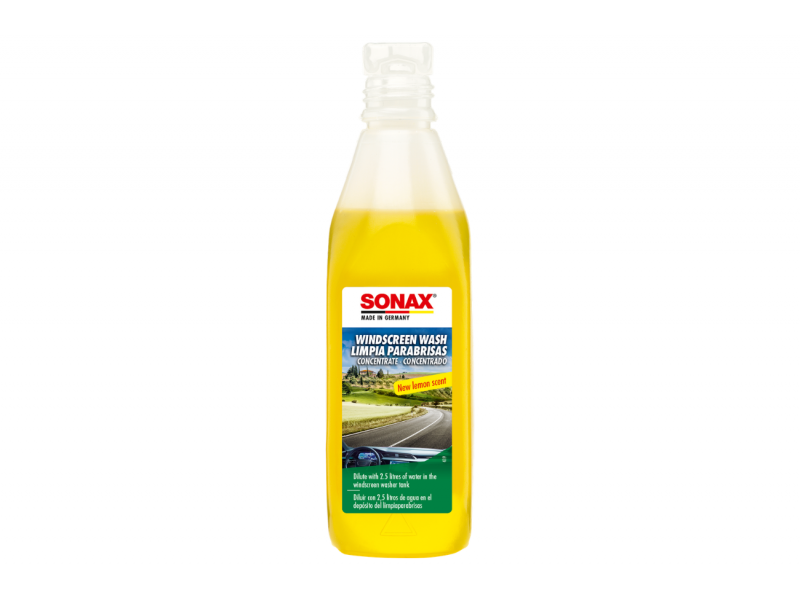 ο Sonax Windscreen Wash Concentrate Summer είναι ένα συμπυκνωμένο καθαριστικό υγρό παρμπρίζ, ιδανικό για χρήση κατά τους καλοκαιρινούς μήνες. Αφαιρεί άμεσα έντομα, λιπαρούς ρύπους, υπολείμματα καυσαερίων και σιλικόνης, προσφέροντας καθαρή ορατότητα χωρίς γραμμές. Η συμπυκνωμένη σύνθεσή του επιτρέπει αραίωση έως 1:10, δημιουργώντας έως και 2,5 λίτρα έτοιμου υγρού, γεγονός που το καθιστά ιδιαίτερα οικονομικό. Είναι ασφαλές για βαφή, λάστιχα και πλαστικά, ενώ είναι κατάλληλο και για σύγχρονα συστήματα ψεκασμού (fan nozzles). Διαθέτει ευχάριστο άρωμα λεμονιού και μπορεί να χρησιμοποιηθεί με νερό οποιασδήποτε σκληρότητας χωρίς να αφήνει άλατα.