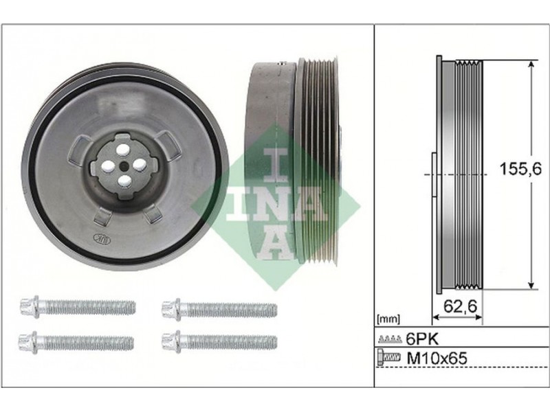 Criteries : Εξωτερική διάμετρος [mm] 155,60, Πλάτος [mm] 62,60, Πλήθος εγκοπών 6, Ταλάντωση με αποσβεστήρα κραδασμών