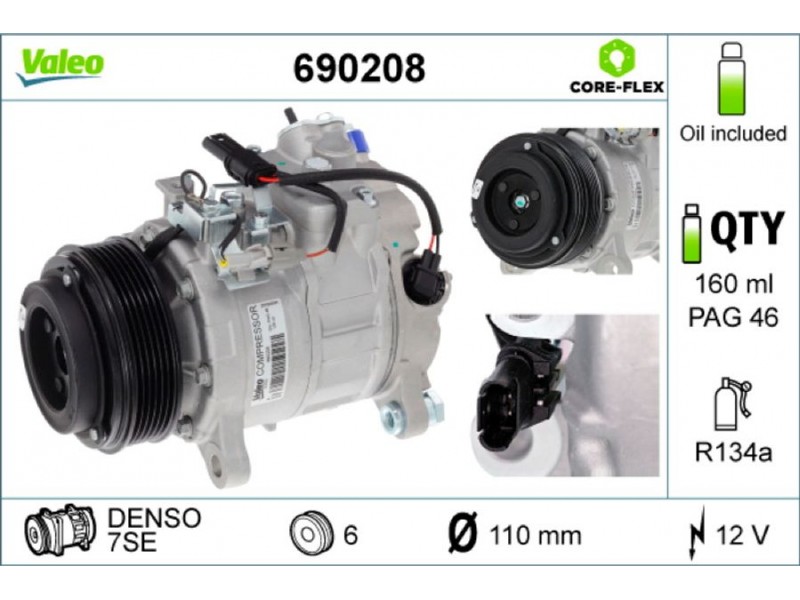VALEO ΚΟΜΠΡΕΣΕΡ A/C VALEO 690208 - Συμπιεστής, συστ. κλιματισμού