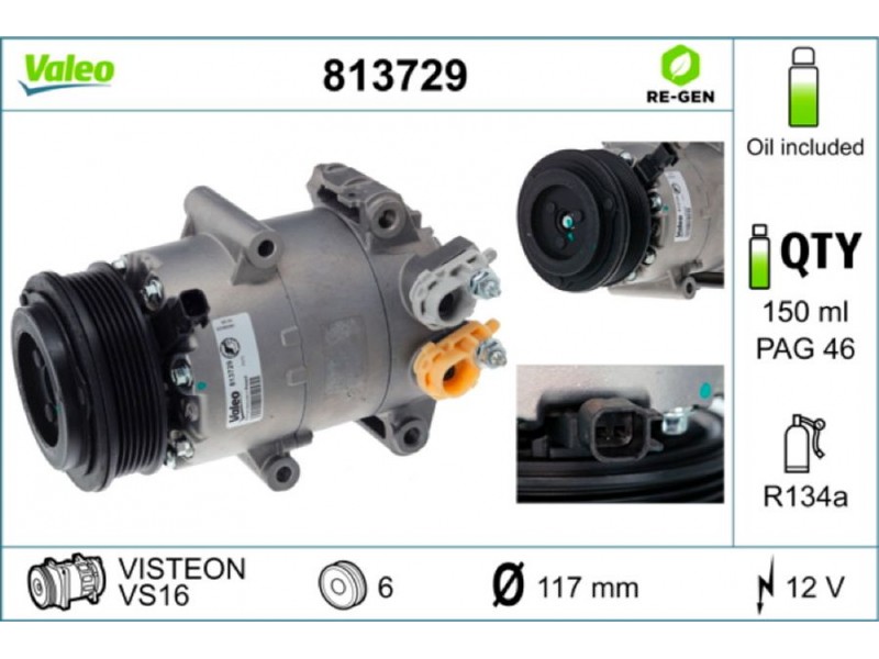 VALEO ΚΟΜΠΡΕΣΕΡ A/C VALEO 813729 - Συμπιεστής, συστ. κλιματισμού