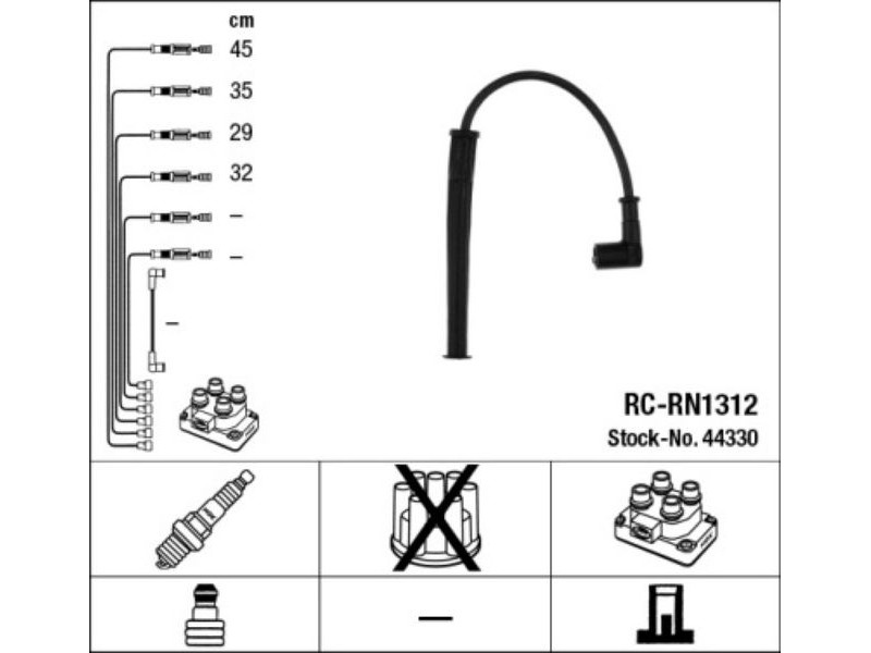 RCRN1312 (44330) ΣΕΤ ΜΠΟΥΖΟΚΑΛΩΔΙΑ REN.CLIO 1.2 98- NGK 44330 - Σετ καλωδίων υψηλής τάσης