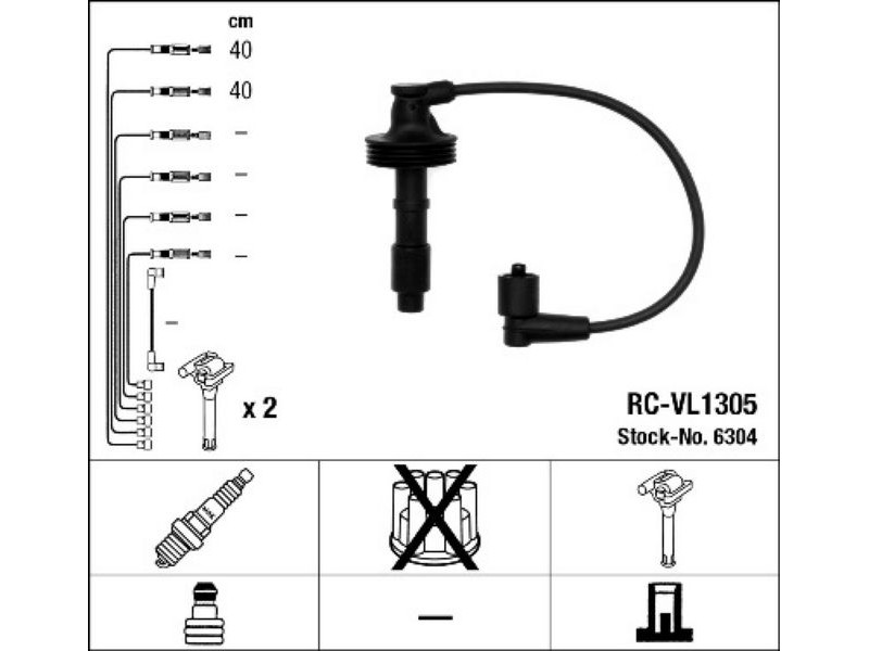 RC-VL1305(6304)-ΜΠΟΥΖΟΚΑΛΩΔΙΑ VOLVO S40(VS)/V40(VW) 1.8-2.0 99-04 NGK 6304 - Σετ καλωδίων υψηλής τάσης
