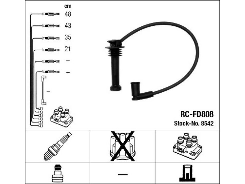 RCFD808 (8542) ΣΕΤ ΜΠΟΥΖΟΚΑΛΩΔΙΑ FORD MONDEO/COUGAR/FOCUS 1.8-2.0 NGK 8542 - Σετ καλωδίων υψηλής τάσης