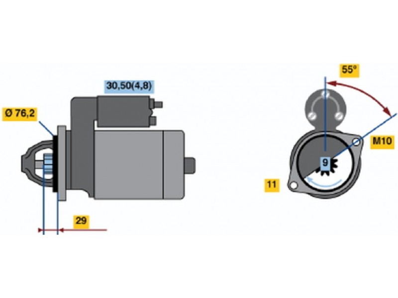 Criteries : Αριθμός δοντιών 9, Αρχική θέση γραναζιού [mm] 25,5, Γωνία Οπή στερέωσης [μοίρες] 55, Γωνία στήριξης [μοίρες] 55, Γωνία Στόμιο [μοίρες] 55, Διάμετρος οπής 2 [mm] 11, Διάμετρος φλάντζας [mm] 76,2, Διαστάσεις σπειρώματος M10, Επαφή 30, Επαφή 50, Θέση/βαθμοί rechts, Ισχύς μίζας [kW] 1,7, Μήκος [mm] 227, Παραλλαγή μίζας αυτοέδραση, Πλήθος οπών με βόλτα 1, Πλήθος των οπών στερέωσης 1, Τάση [V] 12, Φορά περιστροφής Φορά περιστροφής προς τα δεξιά