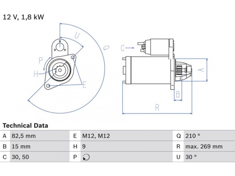 Criteries : Αριθμός δοντιών 9, Αρχική θέση γραναζιού [mm] 15, Γωνία Οπή στερέωσης [μοίρες] 30, Γωνία στήριξης [μοίρες] 30, Γωνία Στόμιο [μοίρες] 210, Διάμετρος φλάντζας [mm] 82,5, Διαστάσεις σπειρώματος 1 M12x1.75, Διαστάσεις σπειρώματος M12, Επαφή 30, Επαφή 50, Θέση/βαθμοί rechts, Ισχύς μίζας [kW] 1,8, Μήκος [mm] 269, Παλαιό εξάρτημα , Παραλλαγή μίζας αυτοέδραση, Πλήθος οπών με βόλτα 2, Πλήθος των οπών στερέωσης 0, Τάση [V] 12, Φορά περιστροφής Φορά περιστροφής προς τα δεξιά