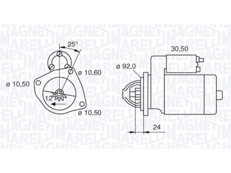 Criteries : Αριθμός δοντιών 13, Διάμετρος [mm] 92, Ισχύς μίζας [kW] 2,3, Τάση [V] 12, Φορά περιστροφής Φορά περιστροφής προς τα δεξιά