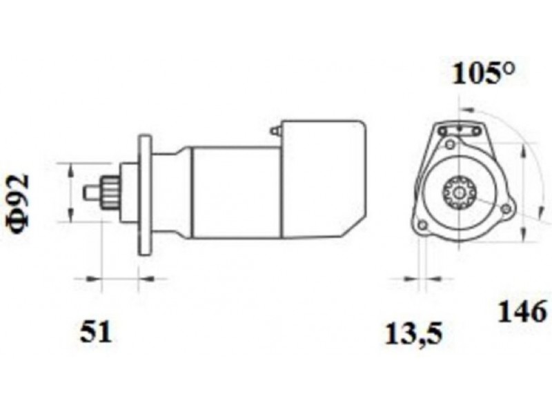 Criteries : Αριθμός δοντιών 9, για βάθος σφονδύλου [mm] 51,0, Γωνία στήριξης [μοίρες] 105,0, Διάμετρος οπής 1 [mm] 13,5, Διάμετρος των σημείων στήριξης [mm] 146,0, Διάμετρος φλάντζας [mm] 92,0, Επαφή 31, Ισχύς μίζας [kW] 5,4, Καθαρό βάρος [g] 16990, μήκος συσκευασίας [cm] 45,2, πλάτος συσκευασίας [cm] 20,60, Πλήθος των οπών στερέωσης 3, Τάση [V] 24, ύψος συσκευασίας [cm] 15,90, Φορά περιστροφής Φορά περιστροφής προς τα δεξιά