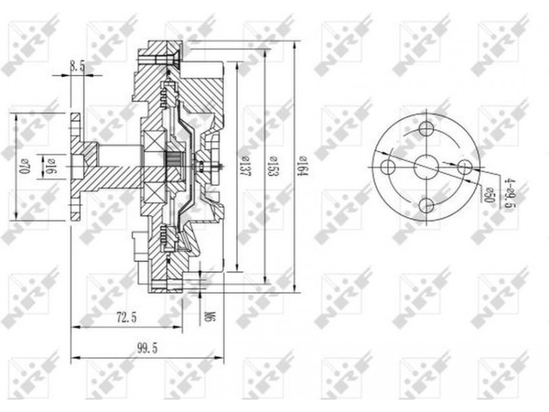 Criteries : Διάμετρος οπής [mm] 10, Διάμετρος οπών κύκλου μουαγιέ [mm] 153, Διάμετρος φλάντζας [mm] 70, Διαστάσεις σπειρώματος M6, Εξωτερική διάμετρος [mm] 164, Θέρμανση/ψύξη για οχήματα με ανεμιστήρα (υγρός συμπλέκτης τριβής), Θέρμανση/ψύξη πλέον Βεντιλατέρ, Πλήθος οπών με βόλτα 4, Πλήθος των οπών στερέωσης 4, Τρόπος λειτουργίας θερμικό, Υψος [mm] 100