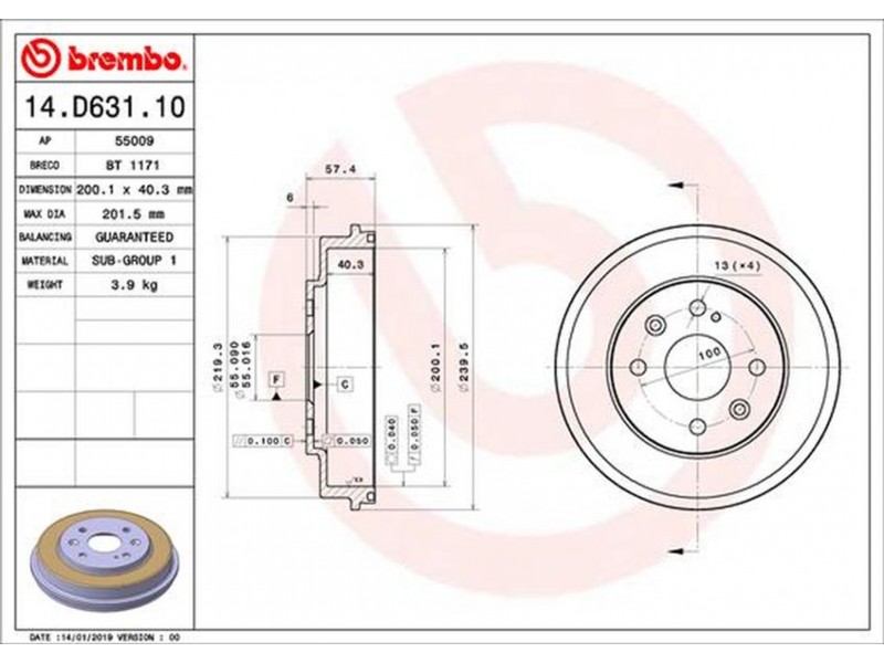 Criteries : Αριθμός οπών 4, Διάμετρος τοποθέτησης [mm] 55, Εξωτερική διάμετρος ταμπούρου [mm] 200,1, μέγ. διάσταση ξεβιδώματος ταμπούρου φρένου [mm] 201,5, Ύψος ταμπούρου φρένου εσωτερικά [mm] 40,3, Ύψος ταμπούρου φρένου συνολικά [mm] 57,4