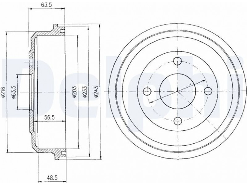 Criteries : Αριθμός οπών 4, Διάμετρος κέντρωσης [mm] 63,5, Διάμετρος κύκλου οπής [mm] 107,8, Εξωτερική διάμετρος ταμπούρου [mm] 243, Εσωτερική διάμετρος ταμπούρου [mm] 203, Ύψος ταμπούρου φρένου εσωτερικά [mm] 49, Ύψος ταμπούρου φρένου συνολικά [mm] 64
