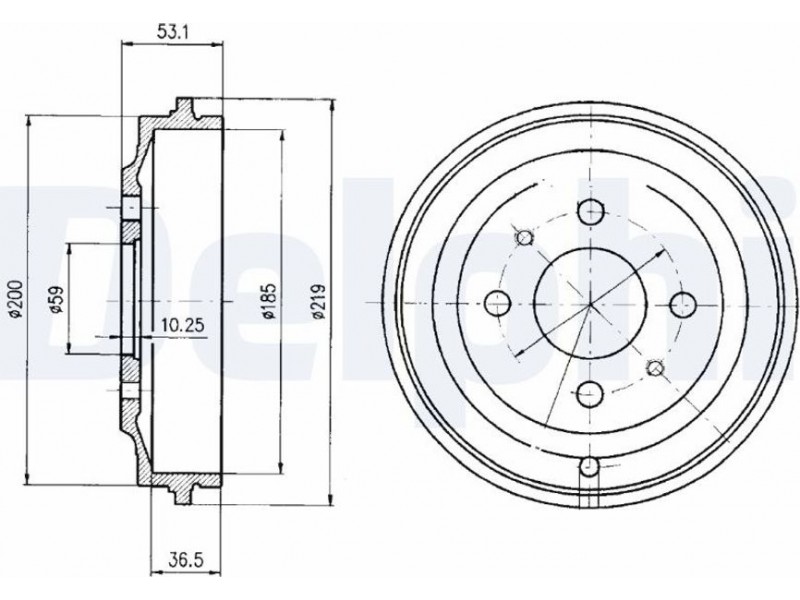 Criteries : Αριθμός οπών 4, Διάμετρος κέντρωσης [mm] 59, Διάμετρος κύκλου οπής [mm] 98, Εξωτερική διάμετρος ταμπούρου [mm] 219, Εσωτερική διάμετρος ταμπούρου [mm] 185, Ύψος ταμπούρου φρένου εσωτερικά [mm] 37, Ύψος ταμπούρου φρένου συνολικά [mm] 53