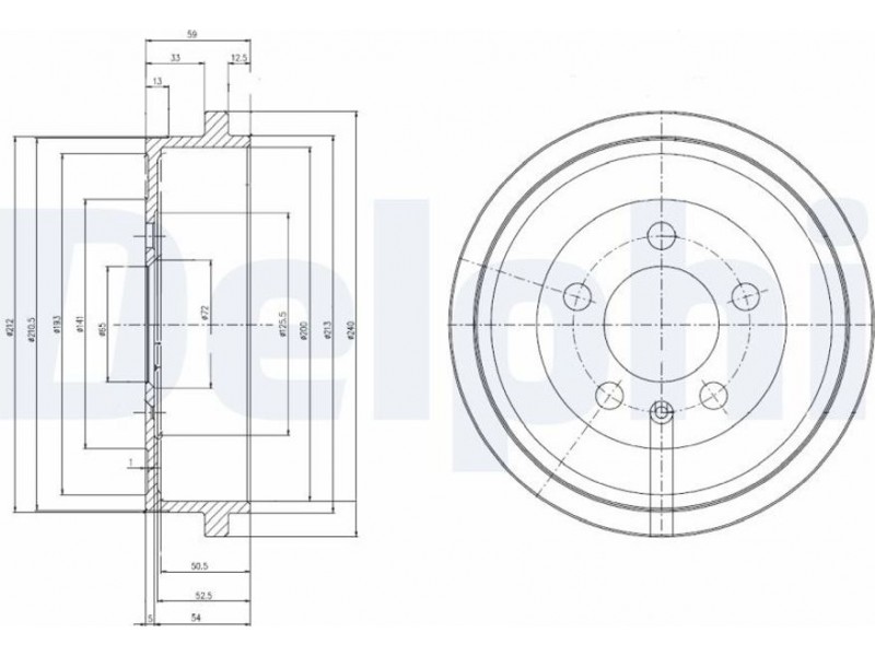 Criteries : Αριθμός οπών 5, Διάμετρος κέντρωσης [mm] 65, Διάμετρος κύκλου οπής [mm] 100, Εξωτερική διάμετρος ταμπούρου [mm] 240, Εσωτερική διάμετρος ταμπούρου [mm] 200, Ύψος ταμπούρου φρένου εσωτερικά [mm] 51, Ύψος ταμπούρου φρένου συνολικά [mm] 59