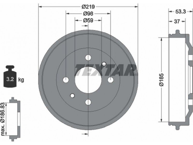 Criteries : Βάρος [kg] 3,2, Διάμετρος κέντρωσης [mm] 59, Διάμετρος κύκλου οπής [mm] 98, Διάμετρος οπής μπουλονιού τροχού [mm] 13,6, Εξωτερική διάμετρος ταμπούρου [mm] 219, Εσωτερική διάμετρος ταμπούρου [mm] 185, μέγ. διάσταση ξεβιδώματος ταμπούρου φρένου [mm] 186,8, μήκος συσκευασίας [cm] 23,3, Πατρόν τρύπας/αριθμός τρυπών 04/06, πλάτος συσκευασίας [cm] 22,9, Συμπληρωματικό προϊόν/ πληροφορίες 2 χωρίς μπουλόνια στερέωσης τροχού, Συμπληρωματικό προϊόν/ πληροφορίες 2 χωρίς πλήμνη, Συμπληρωματικό προϊόν/ πληροφορίες 2 χωρίς ρουλεμάν τροχού, ύψος συσκευασίας [cm] 8,6, Ύψος ταμπούρου φρένου εσωτερικά [mm] 37, Ύψος ταμπούρου φρένου συνολικά [mm] 53