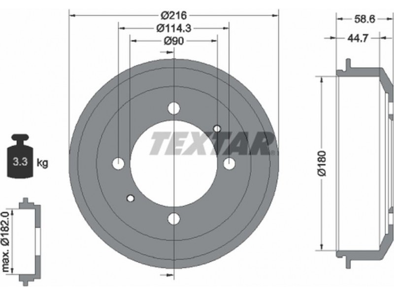 Criteries : Βάρος [kg] 3,3, Διάμετρος κέντρωσης [mm] 90, Διάμετρος κύκλου οπής [mm] 114,3, Διάμετρος οπής μπουλονιού τροχού [mm] 12,8, Εξωτερική διάμετρος ταμπούρου [mm] 216, Εσωτερική διάμετρος ταμπούρου [mm] 180, μέγ. διάσταση ξεβιδώματος ταμπούρου φρένου [mm] 182, μήκος συσκευασίας [cm] 23,3, Πατρόν τρύπας/αριθμός τρυπών 04/06, πλάτος συσκευασίας [cm] 22,9, Συμπληρωματικό προϊόν/ πληροφορίες 2 χωρίς μπουλόνια στερέωσης τροχού, Συμπληρωματικό προϊόν/ πληροφορίες 2 χωρίς πλήμνη, Συμπληρωματικό προϊόν/ πληροφορίες 2 χωρίς ρουλεμάν τροχού, ύψος συσκευασίας [cm] 8,6, Ύψος ταμπούρου φρένου εσωτερικά [mm] 45, Ύψος ταμπούρου φρένου συνολικά [mm] 59