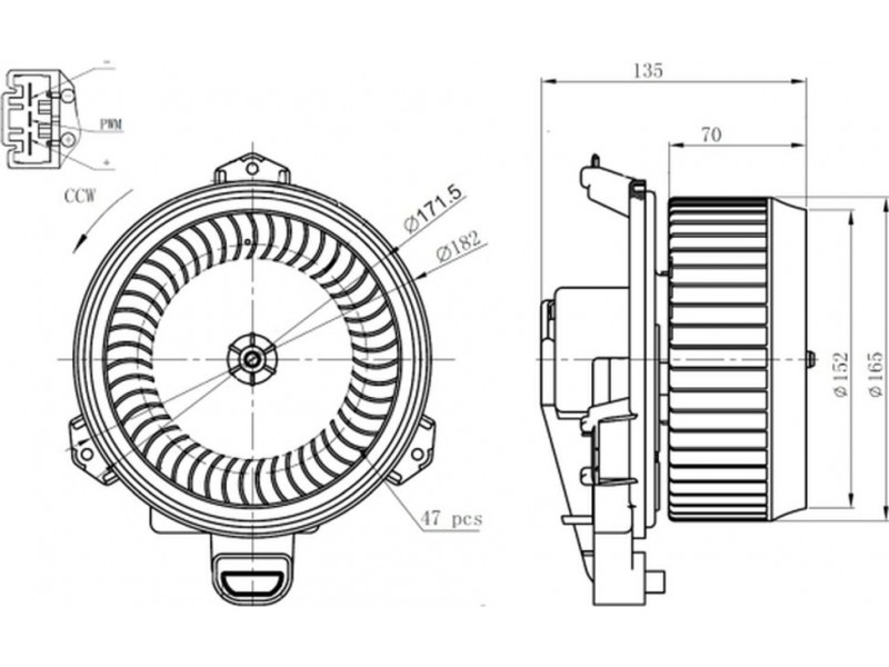 Criteries : Αριθμός κουμπωτών επαφών 3, Αριστερό ή δεξιό τιμόνι για αριστεροτίμονα οχήματα, Διάμετρος 1 [mm] 165, Ισχύς [W] 240, Μορφή περιβλήματος της σύνδεσης ορθογώνια, Τάση [V] 12, Φορά περιστροφής Φορά περιστρ. αντίθετα προς τη φορά των δεικτών του ρολογιού