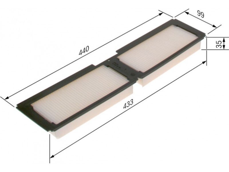 Criteries : Μήκος [mm] 439,6, Παραλλαγή φίλτρου Φίλτρο σωματιδίων, Πλάτος [mm] 99, Ποσότητα 1, Υψος [mm] 35