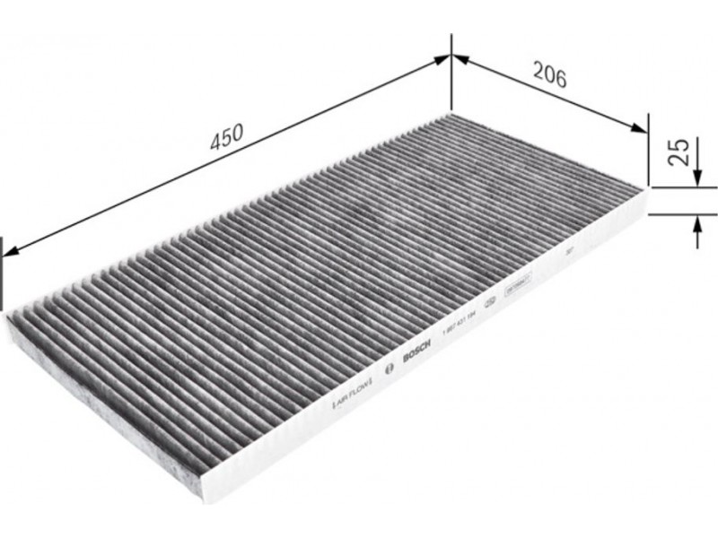 Criteries : Έκδοση με ενεργό άνθρακα (αρ. προϊόντος) 1987432541, Μήκος [mm] 450, Παραλλαγή φίλτρου φίλτρο ενεργού άνθρακα, Πλάτος [mm] 206, Ποσότητα 1, Υψος [mm] 25