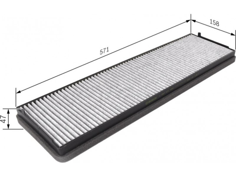 Criteries : Βασική έκδοση (αρ. προϊόντος) 1987431157, Μήκος [mm] 581, Παραλλαγή φίλτρου φίλτρο ενεργού άνθρακα, Πλάτος [mm] 168, Ποσότητα 1, Υψος [mm] 47,3
