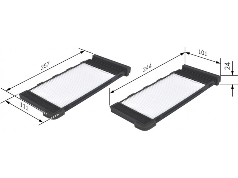 Criteries : Μήκος [mm] 256,5, Παραλλαγή φίλτρου Στοιχείο φίλτρου, Παραλλαγή φίλτρου Φίλτρο σωματιδίων, Πλάτος [mm] 111, Ποσότητα 2, Υψος [mm] 24
