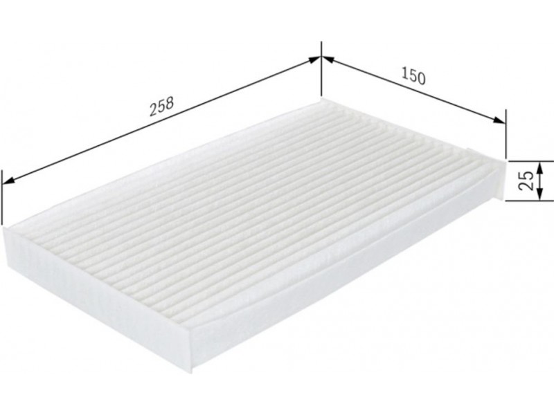 Criteries : Μήκος [mm] 150, Παραλλαγή φίλτρου Φίλτρο σωματιδίων, Πλάτος [mm] 258, Ποσότητα 1, Υψος [mm] 25