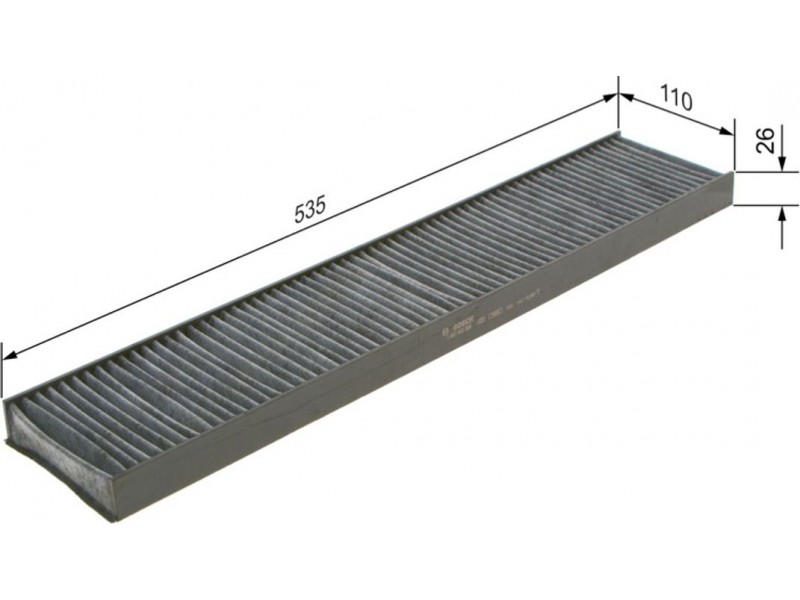 Criteries : Βασική έκδοση (αρ. προϊόντος) 1987432028, Μήκος [mm] 535, Παραλλαγή φίλτρου φίλτρο ενεργού άνθρακα, Πλάτος [mm] 110, Ποσότητα 1, Υψος [mm] 26