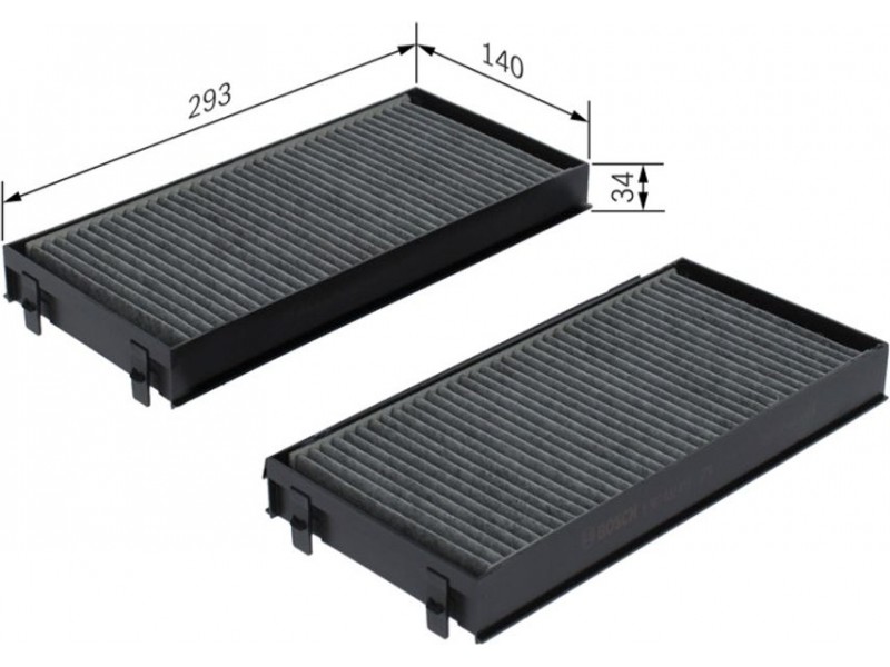 Criteries : Βασική έκδοση (αρ. προϊόντος) 1987432219, Μήκος [mm] 292, Παραλλαγή φίλτρου φίλτρο ενεργού άνθρακα, Πλάτος [mm] 143, Ποσότητα 2, Υψος [mm] 34