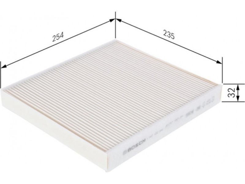 Criteries : Έκδοση εξαιρετ. απόδοσης με ενεργό άνθρακα (αρ. προϊόντος) 0986628630, Έκδοση με ενεργό άνθρακα (αρ. προϊόντος) 1987432543, Μήκος [mm] 253,5, Παραλλαγή φίλτρου Φίλτρο σωματιδίων, Πλάτος [mm] 235, Ποσότητα 1, Υψος [mm] 32